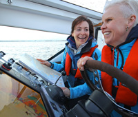 Förarintyget ger dig kunskaper att köra båt dagtid inomskärs och i skyddade vatten. Vill du komma längre ut? Välj Kustskepparintyget som är fortsättningskursen som ger dig kunskaper för mörker- och långfärder.