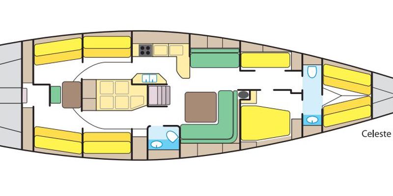 Ritad av Bruce Farr (som ritat de flesta vinnande VO-båtarna) och med sin 30 m höga svarta kolfibermast, dubbla kolfibergrinders och enorma svarta skotvinschar, märks det verkligen att hon är designad för kappsegling. Med denna båt går du aldrig obemärkt in i hamn. På Celeste kan man vara upp till 20 medseglare och den rymliga sittbrunnen och de dubbla rattarna gör att alla får plats. Detta är segelbåten för det stora sällskapet och för dig som söker det lilla extra.
